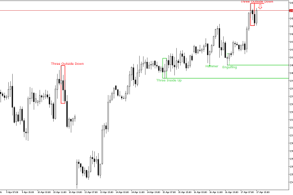 Мурунку соода сессиясында DAX 40 төмөндөө динамикасын көрсөткөн. Узак мөөнөттө, жогорулоо тенденциясы дагы эле үстөмдүк кылууда.Колдоо жана каршылык деңгээли:Жакынкы колдоо деңгээли 24309.56 баа деңгээлинде.Бул деңгээл Three Outside Bars Up үлгүсү менен түзүлгөн. Үлгү үч жапон шамдан турат: биринчи шамдын кыска кара чыныгы денеси бар, экинчи шамдын узун ак чыныгы денеси бар жана биринчи чырактанды толугу…