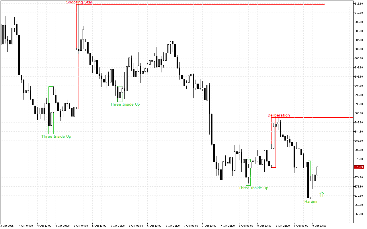 Жакынкы олуттуу каршылык деңгээл 587.68 белгисинде.