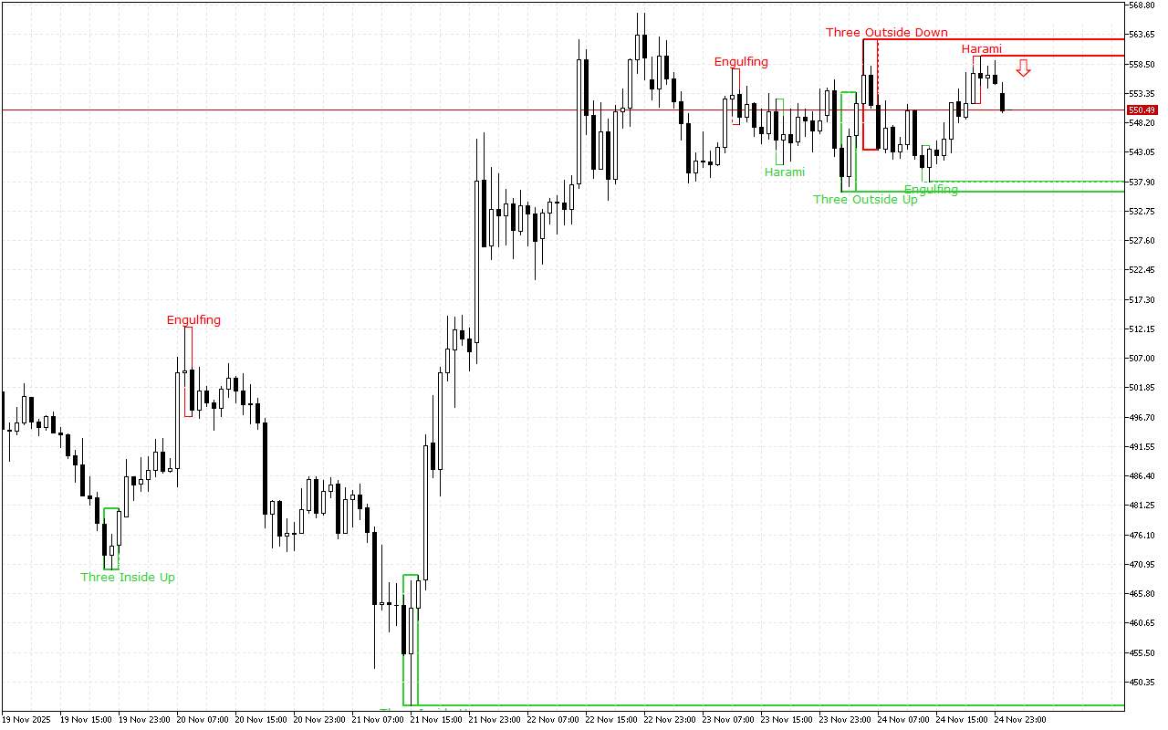 Nejbližší podpora k ceně je na hodnotě 537.83