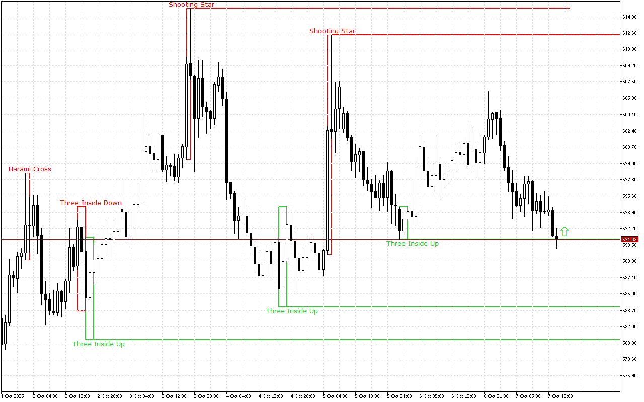 Η πλησιέστερη υποστήριξη στην τιμή είναι στο όριο 591.06