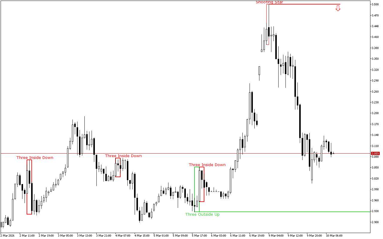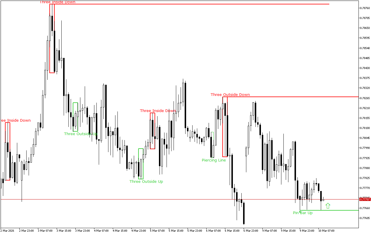This level was formed by the Three Outside Bars Up pattern. The pattern consists of three Japanese candlesticks: the first candlestick has a short black real body, the second candlestick has a long white real body and completely engulfs the first candlestick, and the third candlestick is also white, closing above the second candlestick.