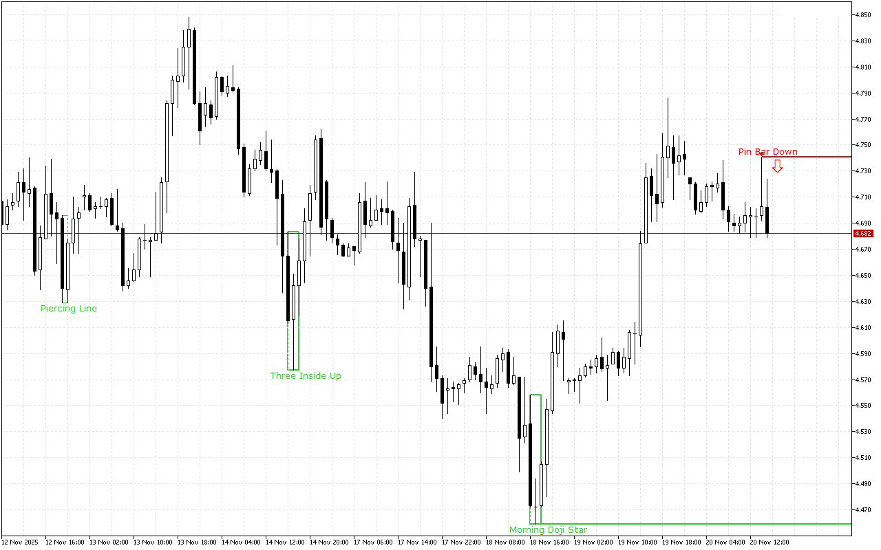 The Morning Doji Star pattern has formed here. This pattern consists of a combination of three Japanese candlesticks. The appearance of this pattern on the chart significantly increases the probability of a price reversal.