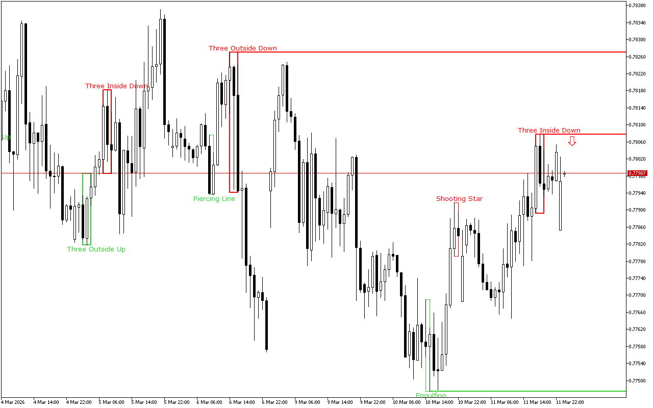 This level was formed by the Three Inside Down pattern. This pattern consists of three Japanese candles: the first candle has a short black real body, the second candle also has a black real body and is completely inside the body of the first candle, and the third candle is also black and closes below the body of the second candle.