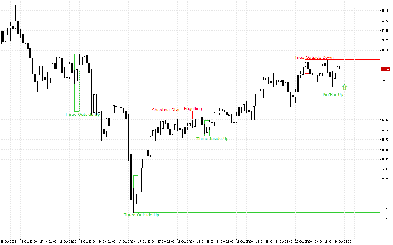 Учурдагы каршылык деңгээл 95.74 белгисинде.