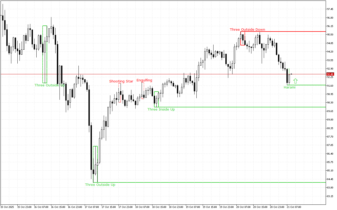Диаграммадагы акыркы сигнал узун позициялардын таралышын көрсөтөт. Бул сигнал башка үлгү пайда болгонго чейин жарактуу болот.