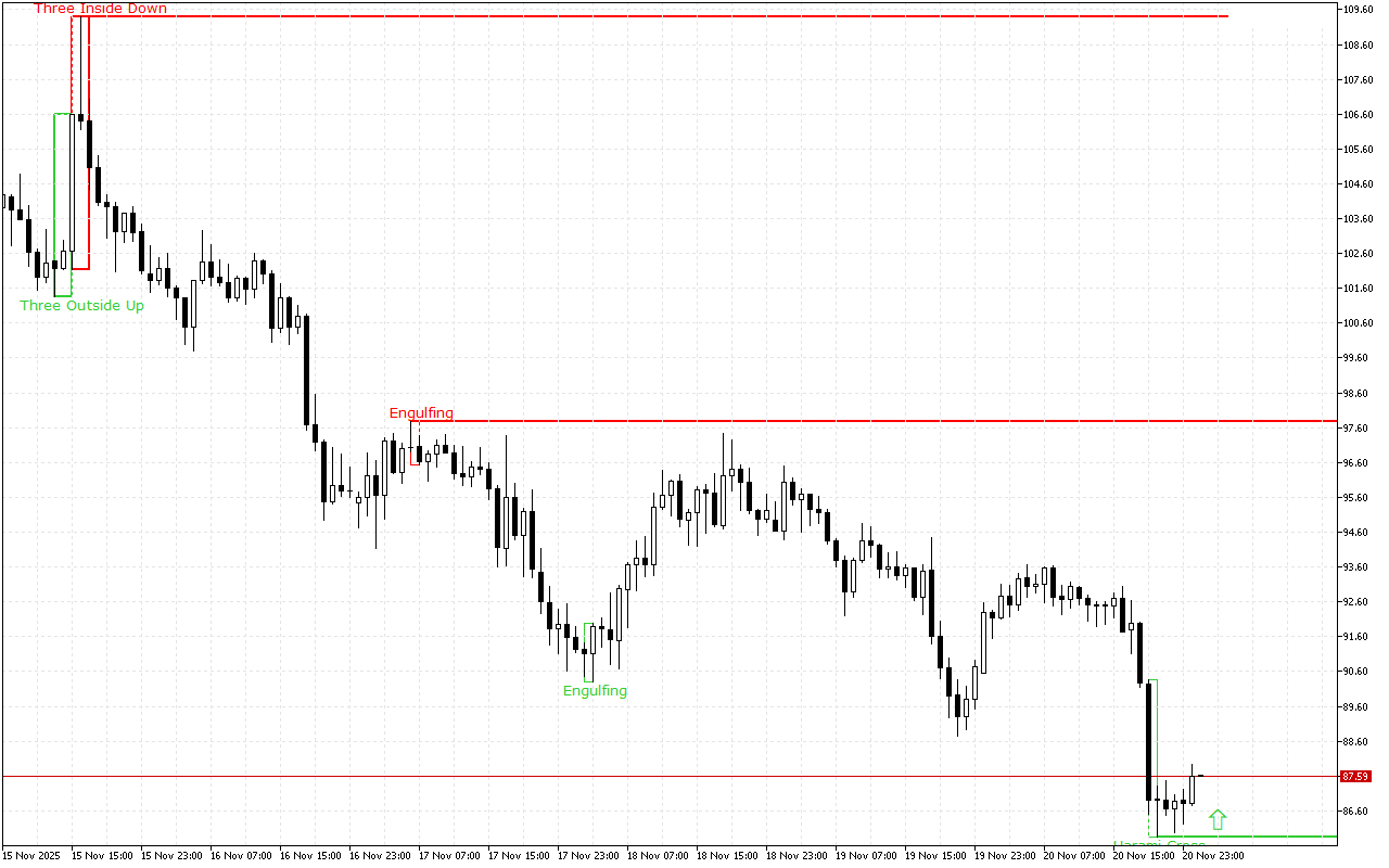Диаграммадагы акыркы сигнал узун позициялардын таралышын көрсөтөт. Бул сигнал башка үлгү пайда болгонго чейин жарактуу болот.