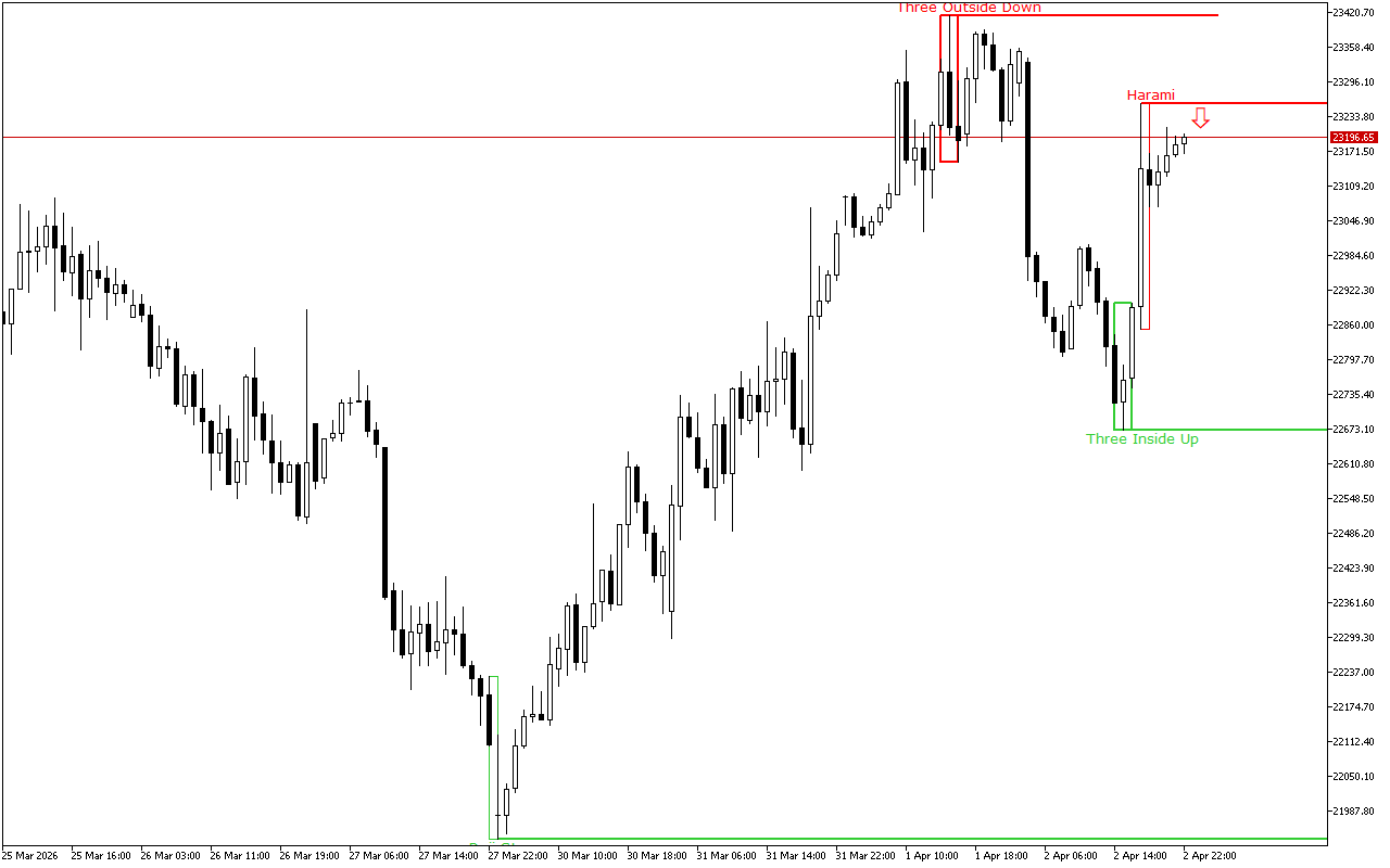 Төмөнкү динамика жогорураак убакыт алкагында басымдуулук кылганына карабастан, узак позицияга күн ичинде артыкчылык берилиши керек. Диаграммадагы акыркы сигнал күн ичинде жогорулоо кыймылынын жайылышын көрсөтөт.