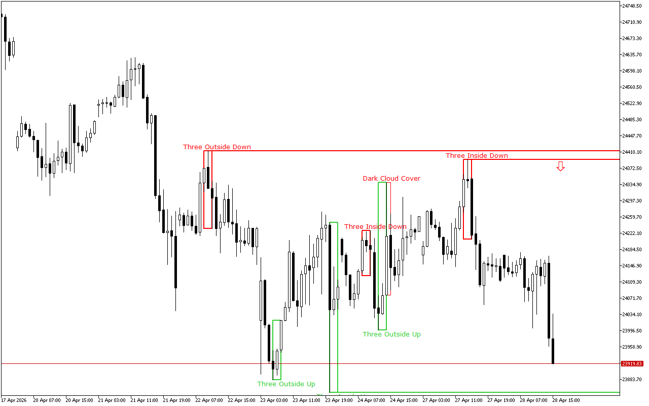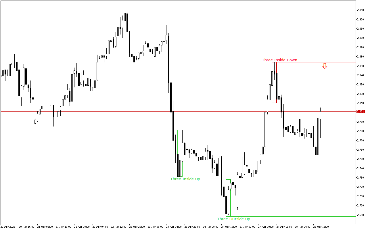 Poziom ten został utworzony przez wzór Trzy wewnętrzne w górę. Wzór ten składa się z trzech japońskich świec: pierwsza świeca ma krótkie białe ciało rzeczywiste, druga świeca ma białe ciało rzeczywiste i znajduje się całkowicie wewnątrz ciała pierwszej świecy, a trzecia świeca jest również biała i zamyka się nad ciałem drugiej świecy.