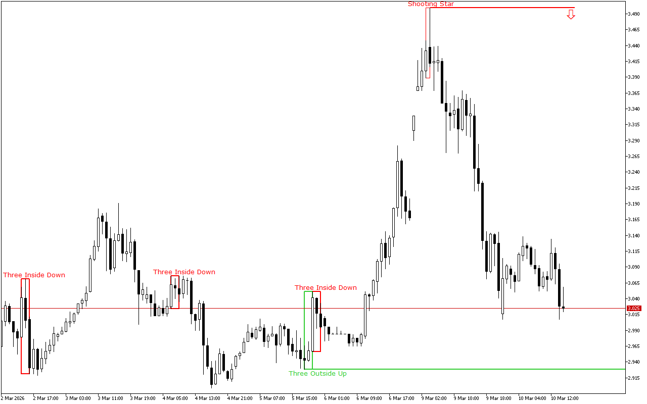 Poziom ten został utworzony przez wzór Trzy wewnętrzne w górę. Wzór ten składa się z trzech japońskich świec: pierwsza świeca ma krótkie białe ciało rzeczywiste, druga świeca ma białe ciało rzeczywiste i znajduje się całkowicie wewnątrz ciała pierwszej świecy, a trzecia świeca jest również biała i zamyka się nad ciałem drugiej świecy.