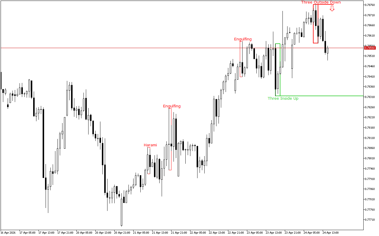 Najnovší vzor v grafe naznačuje preferenciu pre krátke pozície. Tento signál je posilnený aj dynamikou pohybu cien v dlhšom časovom rámci.