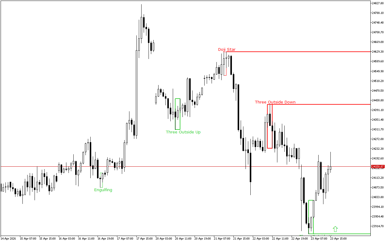 Na višjem časovnem intervalu prevladuje dinamika cen navzgor. Zadnji prejeti signal na grafikonu nakazuje tudi prihajajočo rast. Glede na to je vredno dati prednost signalom za nakup čez dan.