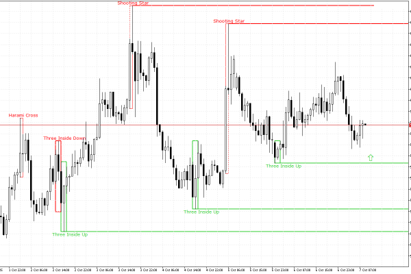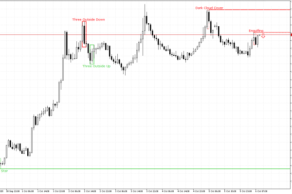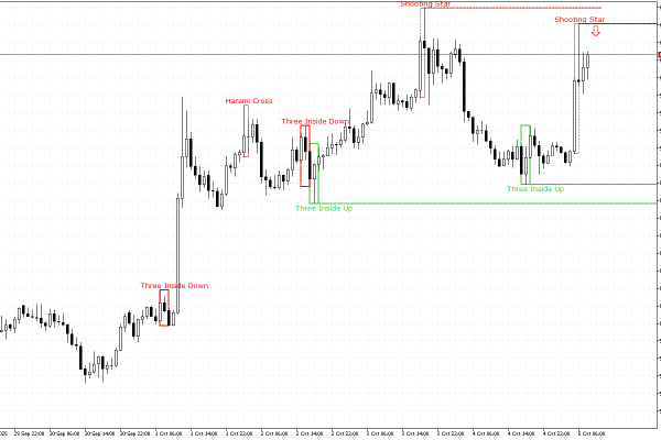 Последња трговинска сесија USDCHF затвара се у зеленој зони, док вектор кретања цена према доље преовладава на већем временском интервалу.Нивои подршке и отпора:Најближа подршка цени је на 0.79054.Овај ниво је формиран од стране“Три унутар шипке горе“ образац. Овај узорак се састоји од три јапанска свећњака: први свећњак има кратко бело тело, други свећњак је беле…