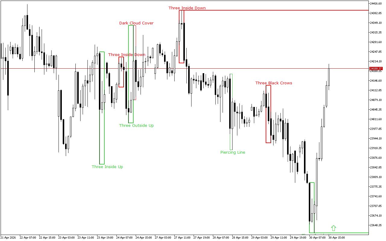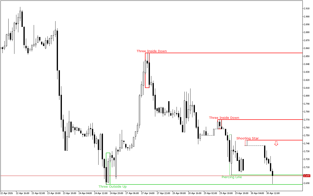 Последњи сигнал на графикону указује на унутардневни приоритет дугих позиција. Овај сигнал ће остати релевантан све док се не формира супротан образац.